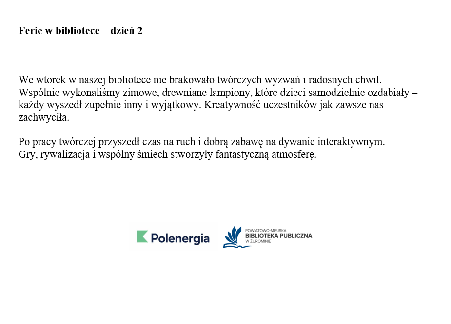 Ferie w bibliotece 2026 - dzień 2