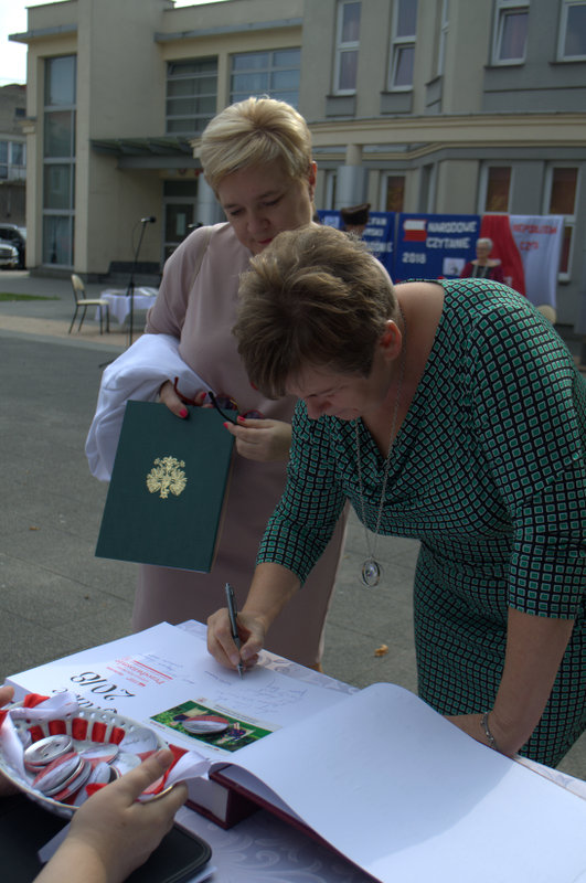 Niestety, miłą atmosferę popsuła pogoda, która uniemożliwiła czytanie w plenerze. Jednak jak przystało na wzorowych czytelników, Narodowe Czytanie kontynuowano w sali Żuromińskiego Centrum Kultury .