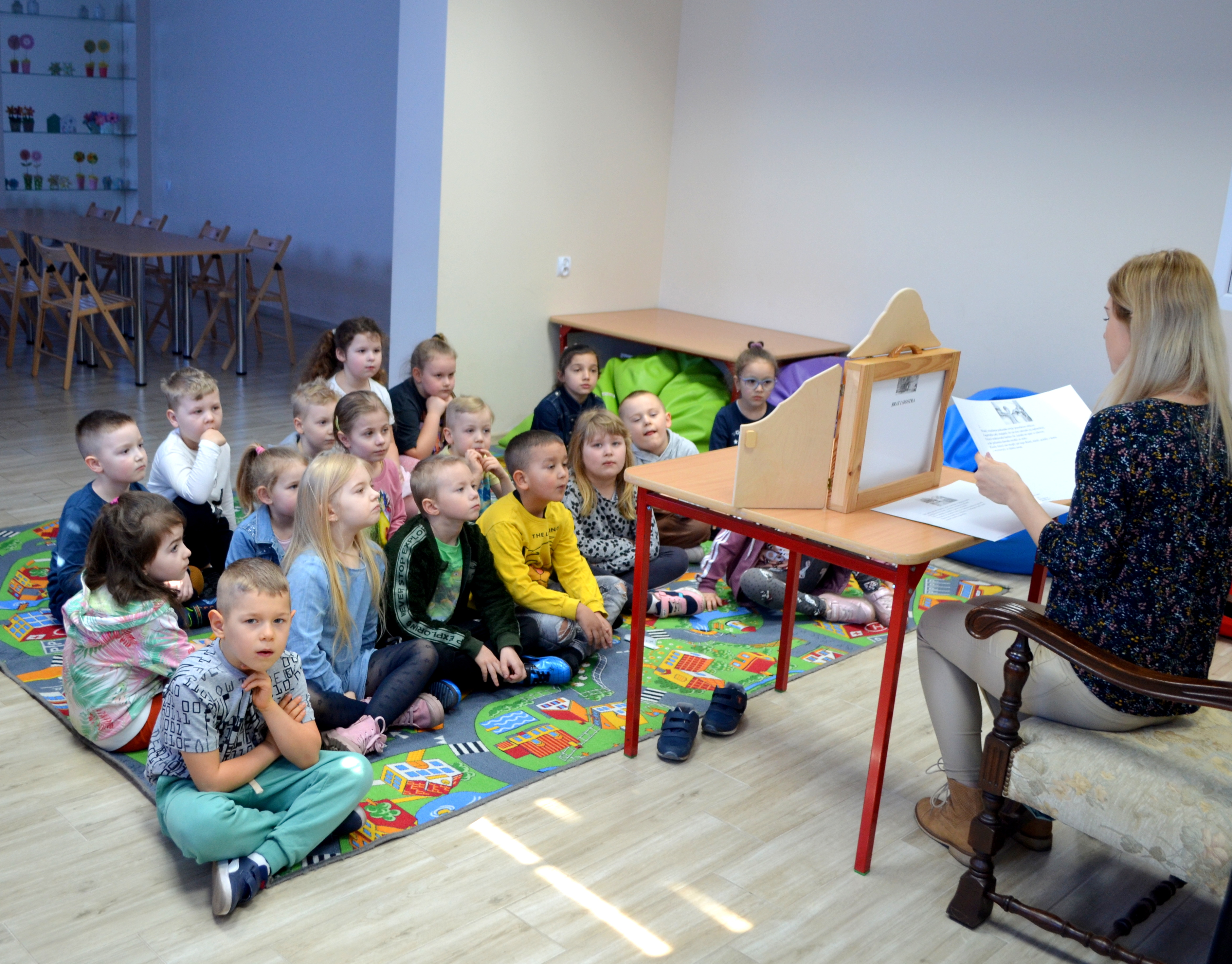 24 marca 2022 r. odwiedziły nas przedszkolaki ze Szkoły Podstawowej nr 1 w Żurominie. Dzieci wysłuchały bajki "Brat i siostra" - J. i W. Grimm, która została przeczytana za pomocą teatrzyku Kamishibai. Wiosenna, kolorowa krzyżówka przyniosła wiele radości.